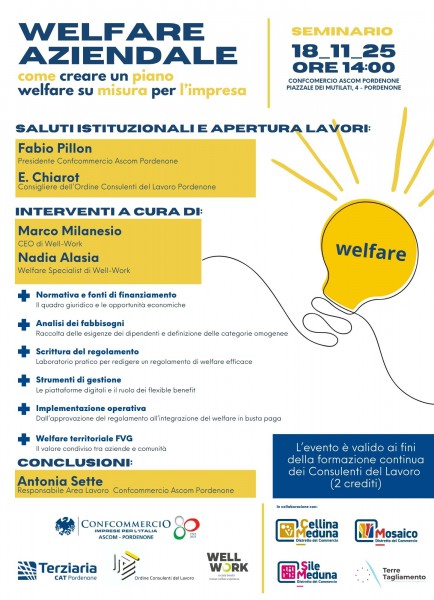 L’evento è valido ai fini della formazione continua dei Consulenti del Lavoro (2 crediti).